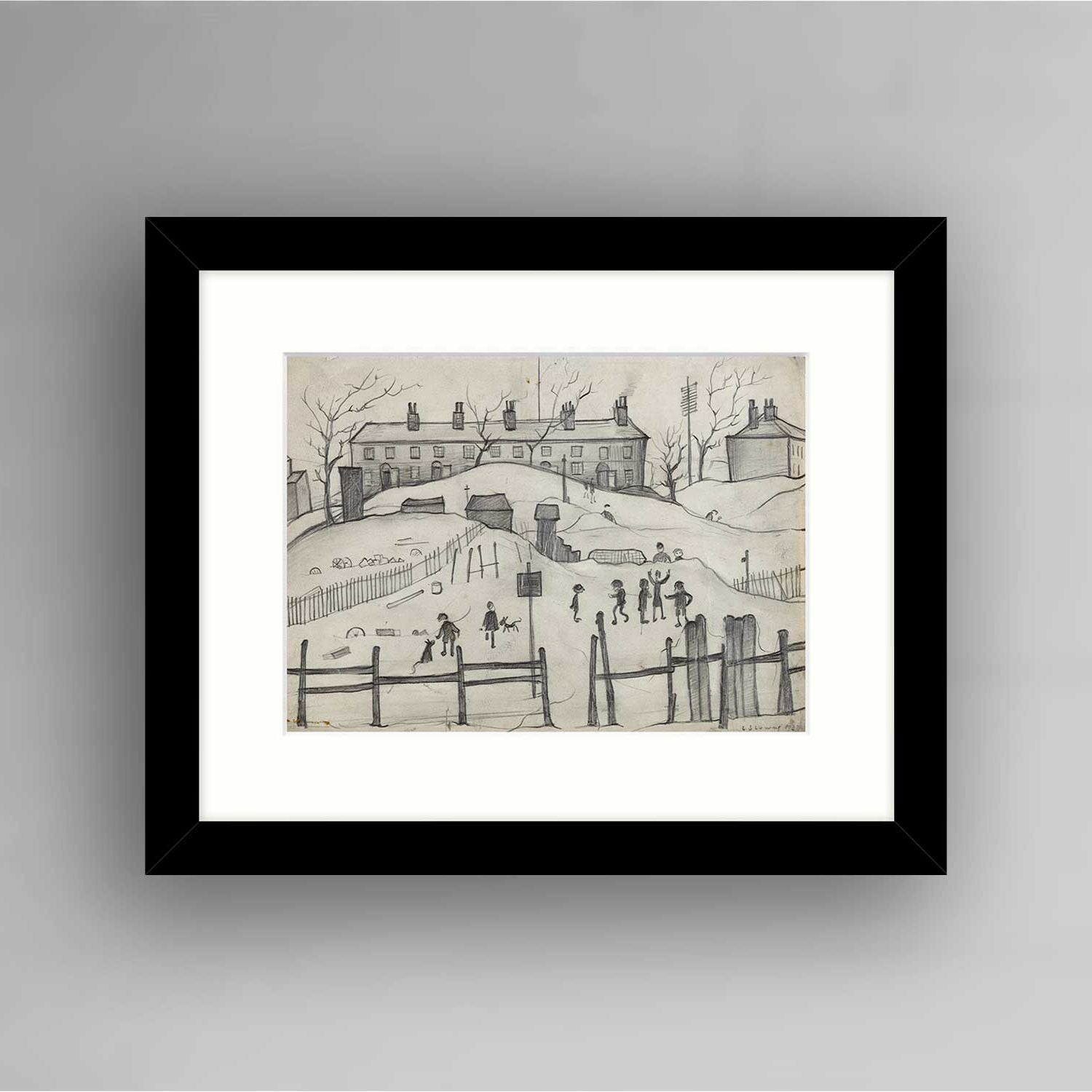 Capture the charm of Salford with this framed digital print of "Houses in Broughton, 1937" by L.S. Lowry. Presented in a sleek, modern black frame, this artwork showcases Lowry’s ability to infuse everyday scenes with emotion and detail.